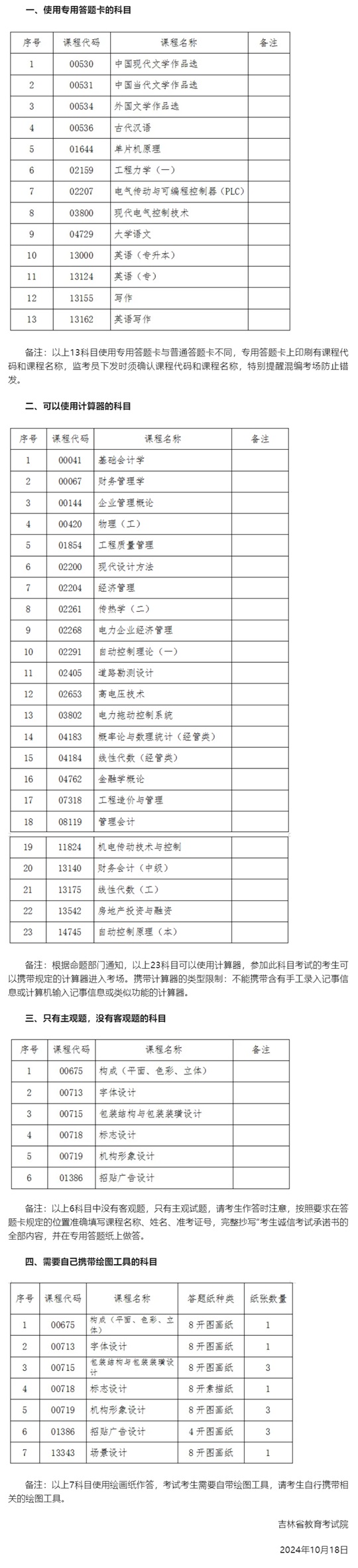 | 吉林:關于2024年10月份自學考試相關科目作答說明的通知 |