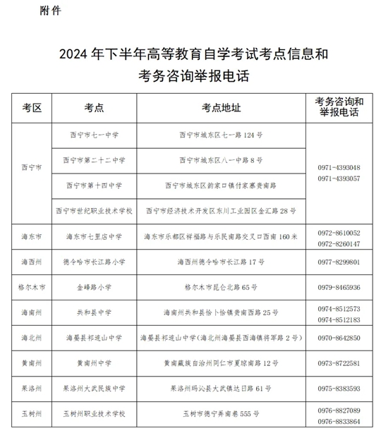 附件:2024年下半年高等教育自學(xué)考試考點(diǎn)信息和考務(wù)咨詢舉報(bào)電話