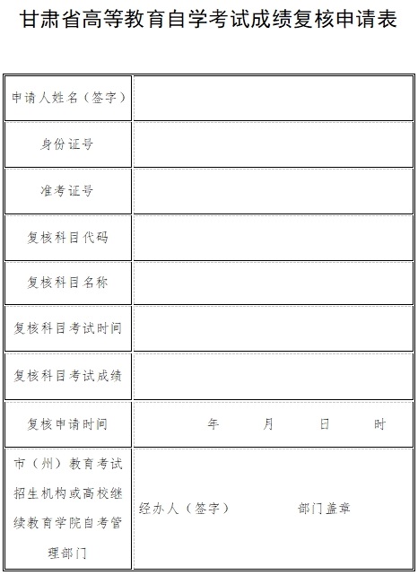 甘肅省高等教育自學(xué)考試成績復(fù)核申請表