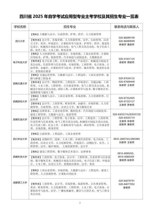 | 四川省2025年自學考試應用型專業(yè)主考學校及其招生專業(yè)一覽表 |
