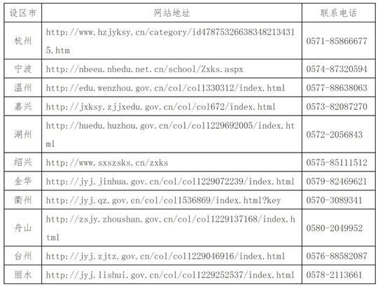 5.請考生務(wù)必關(guān)注報考地所屬設(shè)區(qū)市教育考試機構(gòu)網(wǎng)站,及時了解相關(guān)信息。各設(shè)區(qū)市教育考試機構(gòu)網(wǎng)站地址及聯(lián)系電話如下: