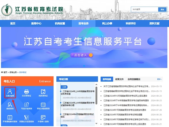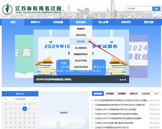 首先,登錄省教育考試院官網(wǎng)(www.jseea.cn),進(jìn)入自學(xué)考試頁面。