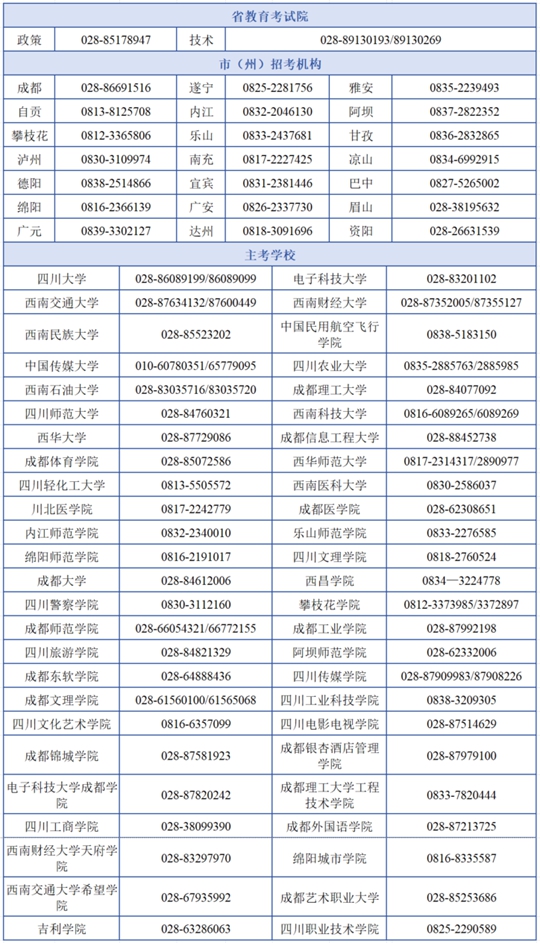 對(duì)于常見(jiàn)問(wèn)題,考生可通過(guò)省教育考試院新推出的24小時(shí)自考智能語(yǔ)音服務(wù)(熱線電話:028-88612678)和官網(wǎng)官微的網(wǎng)絡(luò)云咨詢平臺(tái)咨詢(使用方法詳見(jiàn)官微@自考考生,“服務(wù)用心,功能賦新”——四川自考網(wǎng)絡(luò)云咨詢平臺(tái)功能上新啦。。對(duì)于個(gè)性化問(wèn)題,社會(huì)型專(zhuān)業(yè)考生可于工作時(shí)間向注冊(cè)地縣(市、區(qū))或市(州)招考機(jī)構(gòu)咨詢,應(yīng)用型專(zhuān)業(yè)考生可于工作時(shí)間向主考學(xué)校咨詢。也可于工作時(shí)間聯(lián)系省教育考試院。報(bào)考期間咨詢電話如下。