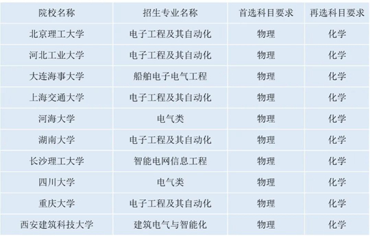 在3+1+2模式下,絕大部分院校的電氣類專業(yè)要求考生首選物理,再選化學(xué)。